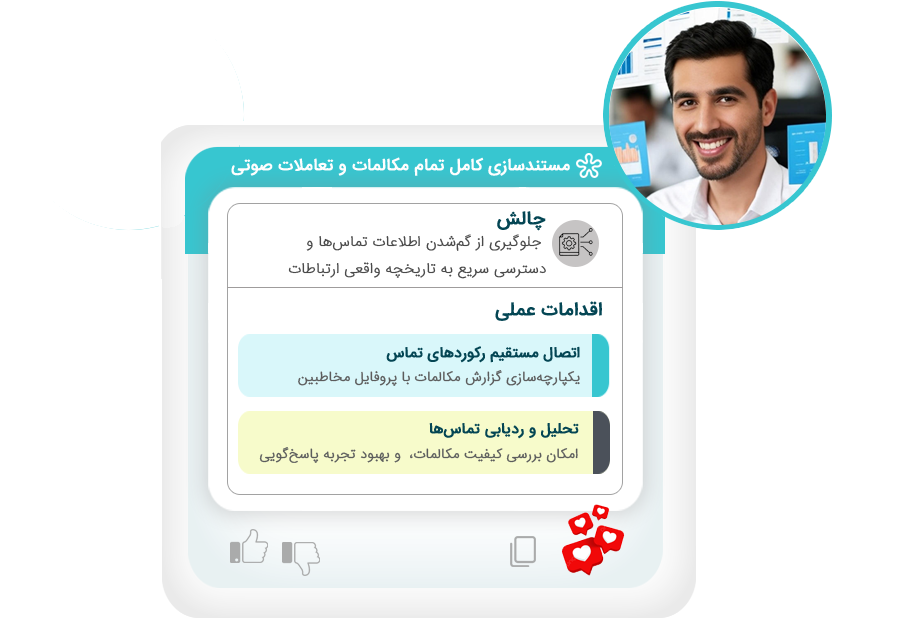 سیستمی پیشرفته برای مدیریت و ثبت کامل سوابق تماسهای تلفنی سازمان، با قابلیت اتصال امن و همزمان به چندین سرور و ترانک VOIP. این ماژول به سازمانها امکان میدهد تمامی تماسها، موضوعات، زمانبندیها و مستندات مرتبط را در یک بستر یکپارچه و قابل گزارشگیری دقیق ثبت و تحلیل کنند. با امکاناتی مانند گزارشسازی لحظهای، نوتیفیکیشنهای هوشمند و ارتباط مستقیم با دیگر بخشهای پلتفرم، مدیریت تماسها به شکل مؤثر و هماهنگ با فرآیندهای عملیاتی سازمان انجام میشود.